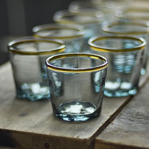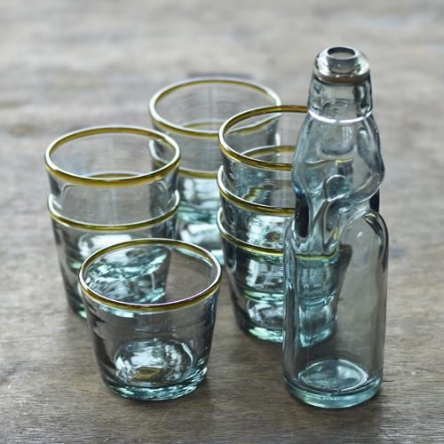 本体の青緑は透明ビンに昔の一升瓶やラムネ瓶の色をお手本に自分で着色、フチの茶はドリンク剤の小瓶を融かしています。他にない非常に良い色の取り合わせであると自負しています。