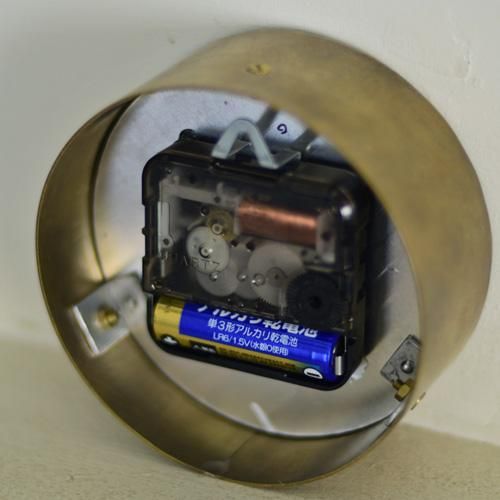 ■6・10枚目 ケース裏側。ネジ釘か押しピンで壁に掛けます。釘がケースと金具の間に入ってしまうことがあります。この場合少しの衝撃で落ちでしまいますので必ず金具の穴に確実に入ったことを確認してください。 ムーブメントはどこでも手に入る手作り時計用のものを使用していますので、故障の場合は交換可能です。また風防ガラス破損の場合も修理交換が可能です。