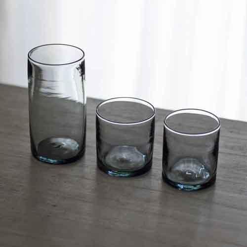 少しグレーがかったブルーグリーンは透明の飲料はもちろん、冷茶やビールの色とも相性がいいです。